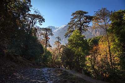 Z Ghyaru pokračujeme celý den téměř po vrstevnici několik set metrů nad údolím řeky a přímo proti nám se začíná rýsovat hlavní hřeben masivu Annapuren. Výhledy jsou, jak se na Nepál sluší a patří, dechberoucí. Obloha je každý večer i ráno velmi fotogenická, ale je překvapivě těžké k ní najít vhodnou kompozici. Nejsou tu k mání žádné výrazné vrcholy.