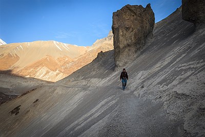Od jezera se na hlavní trasu dostáváme výhodnou zkratkou, která je sice delší, ale alespoň je pořádně zledovatělá. Údolí se znovu zužuje a my začínáme odhadovat, kde tam nahoře leží obávaný průsmyk Thorong La, kde před rokem zahynulo čtyřicet dva lidí při neočekávané sněhové bouři.